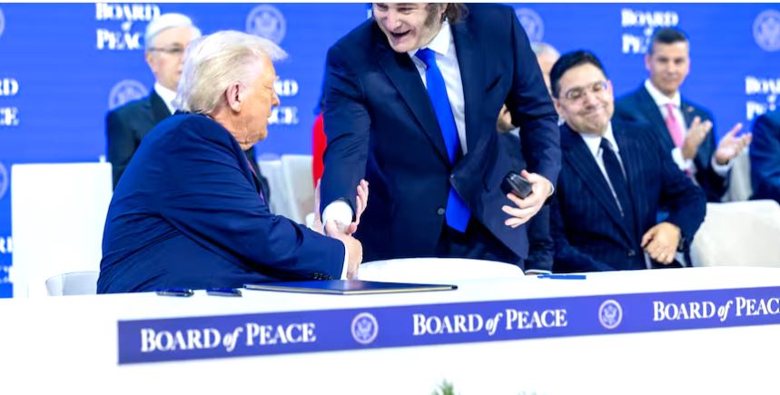 “Felicitaciones, presidente Trump, la carta está ahora en vigor y el Consejo para la Paz es ahora una organización internacional oficial”, declaró Karoline Leavitt, la portavoz de la Casa Blanca, durante la ceremonia, realizada a puertas cerradas en el centro de conferencias del Foro Económico Mundial (WEF), en presencia de un grupo de dirigentes que aceptaron la invitación de Washington para incorporarse. Entre ellos se encontraba el presidente argentino, uno de los únicos representantes occidentales, ya que muchos de los principales aliados de Estados Unidos, en particular los europeos, decidieron declinar la invitación.