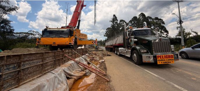 Cada una de las vigas pesa cerca de 30 toneladas. Aunque hace cuatro años estaban acopiadas en el sitio, hoy se logró el izaje gracias a la gestión de la Alcaldía de Rionegro para adquirir el predio faltante para terminar las obras