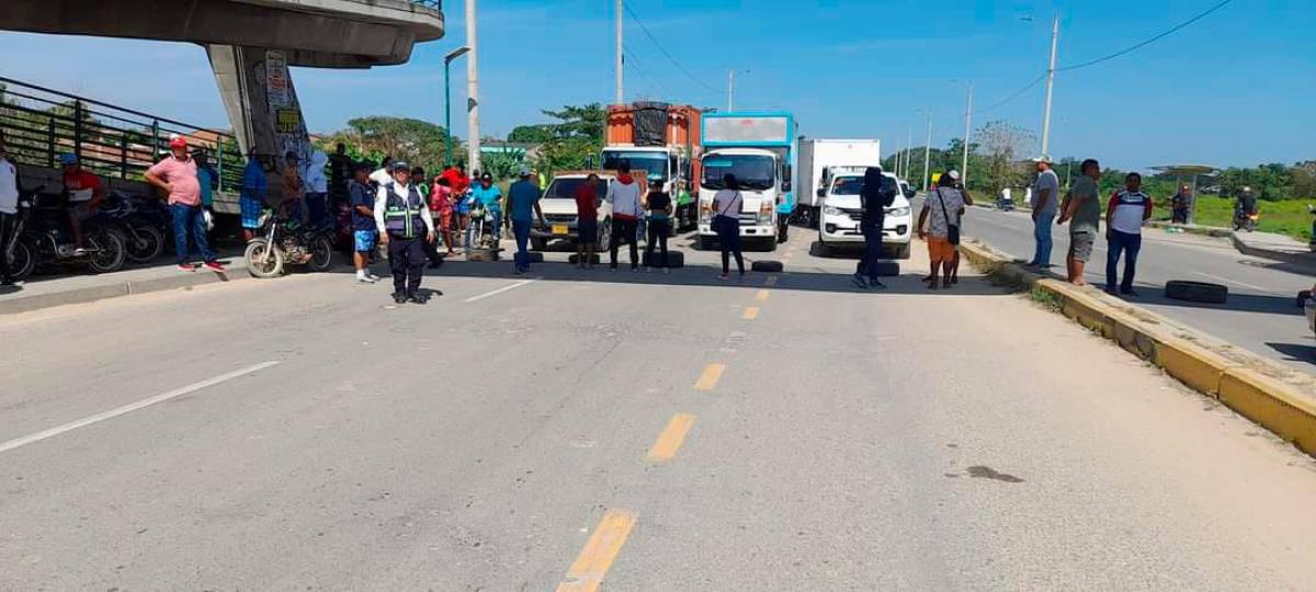 Bloqueado con llantas estuvo el paso por la Troncal de Occidente, a la altura del puente peatonal, por varias horas este jueves.