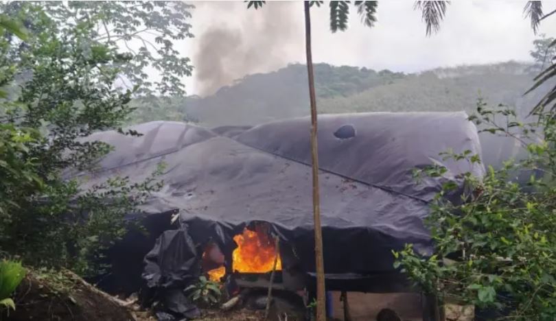 En la segunda acción de la fuerza pública llevada a cabo en la vereda El Barro, la fuerza pública destruyó dos laboratorios para el procesamiento de pasta de base coca que pertenecía a la guerrilla del ELN.