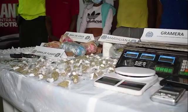 Se logró la incautación de 4.000 gramos de base de coca, 1.100 de marihuana, 200 de bazuco, 18 pastillas alucinógenas, un arma de fuego de fabricación artesanal, un cartucho 38L, tres grameras, 1.000 empaques y $60.000 pesos producto de la venta de estupefacientes.