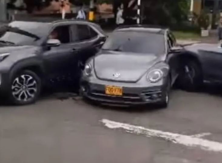La cuestión es que el conductor de uno de los automotores, pese a ya estar chocado, mantuvo el acelerador pisado, haciendo que el vehículo tratara de mover los otros dos carros. La insólita situación generó angustia entre conductores y peatones, quienes presenciaron el impacto en plena hora pico.