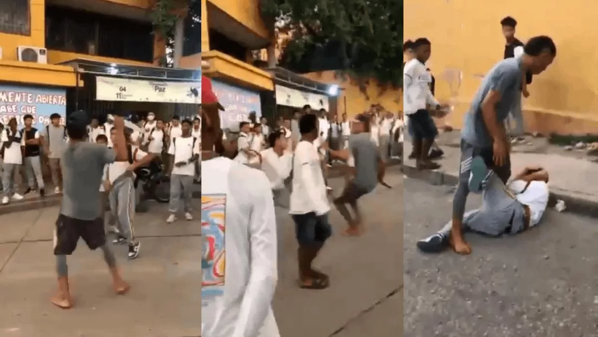 Las imágenes muestran una fuerte pelea entre dos menores de edad fuera de la Institución educativa San Lucas de El Carmelo.