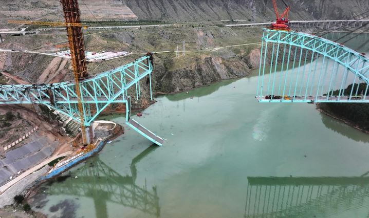 Fotos aéreas de la agencia noticiosa estatal Xinhua mostraban que faltaba una gran sección del arco curvado de color aguamarina del puente. Además, podía verse una sección doblada de la plataforma de la infraestructura colgando hacia abajo sobre el río Amarillo.
