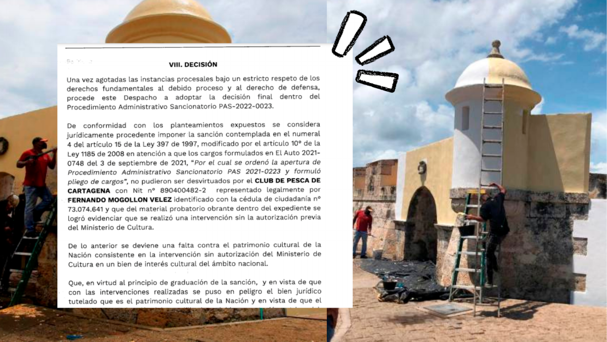 A través de la Resolución 2259 de octubre del presente año, Nelson Roberto Ballen Romero, jefe (e) de la Oficina Asesora Jurídica Ministerio de Cultura, sentenció que el Club de Pesca cartagenero incurrió en una “falta contra el patrimonio cultural de la nación, materializada en la intervención sin autorización del Ministerio de Cultura en el Fuerte de San Sebastián de Pastelillo, declarado bien de interés cultural del ámbito nacional, el cual está incluido en el Plan Especial de Manejo Protección del Cordón Amurallado y el Castillo de San Felipe”.