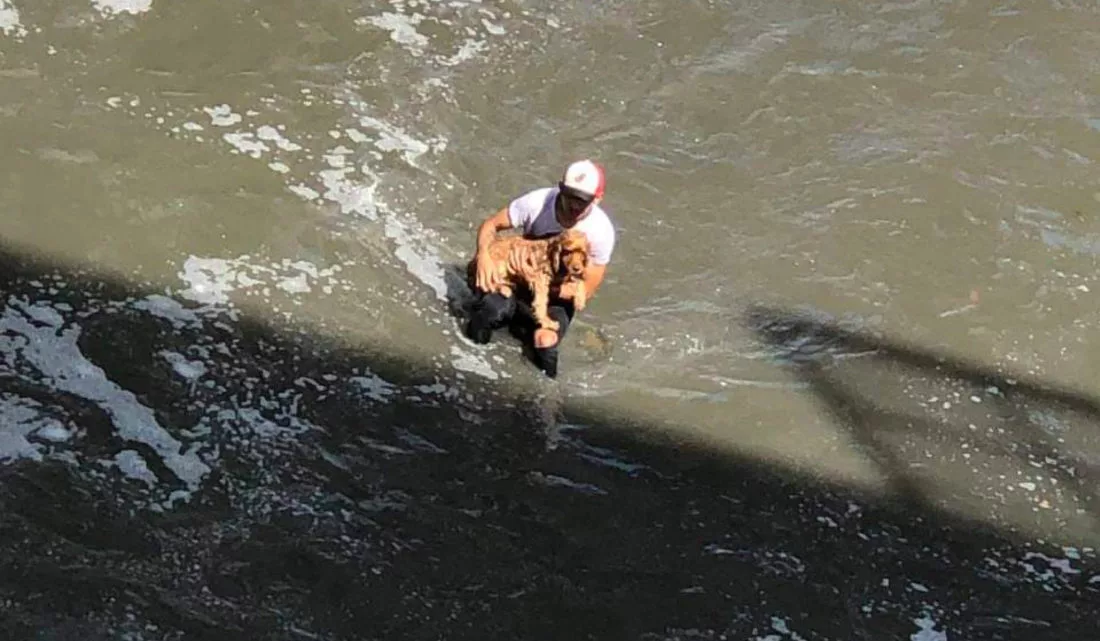 El rescate del perrito se hizo viral, a tal punto que muchos usuarios en internet destacaron la decisión y valentía del hombre que arriesgó su propia vida por salvar la del canino.