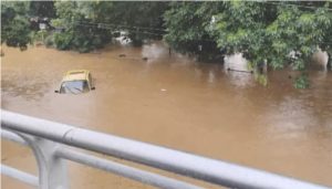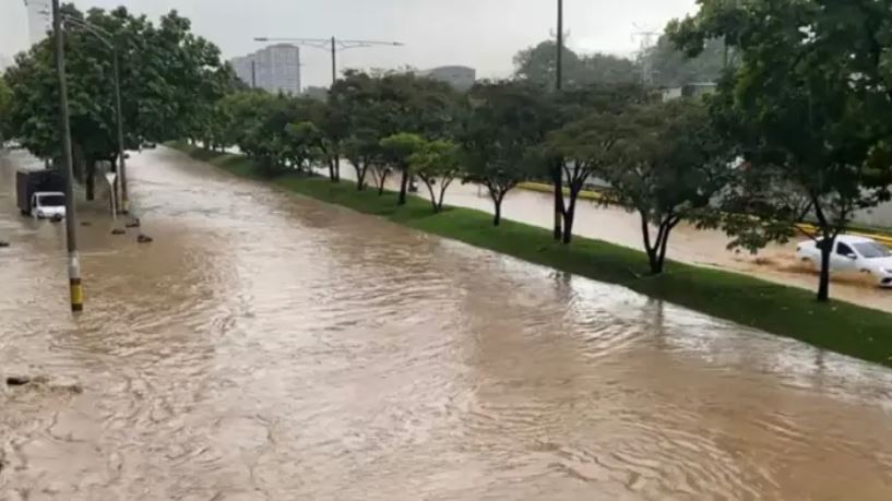 Adicionalmente, un vehículo quedó atrapado con tres personas dentro por el agua con lodo, a la altura de una entidad bancaria, lo que ya afecta ambas calzadas de la avenida Regional.