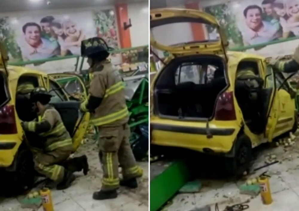 Varias cámaras de seguridad registraron la trayectoria de un taxi que se quedó sin frenos y resultó dentro de un supermercado del barrio Moralba, en el sur de Bogotá.