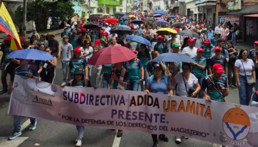 Un poco más de 2000 profesores se reunieron a las afueras de la sede principal de la Asociación de Institutores de Antioquia Adida, en el centro de la ciudad de Medellín, para reclamar por sus derechos en salud a la Fiduprevisora y el Fondo Nacional de Prestaciones Sociales del Magisterio FOMAG.