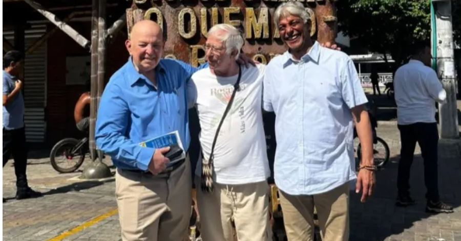 Sacerdote Cyrillus Swinne (centro) junto con el Alto Comisionado para la Paz, Otty Patiño. Cortesía