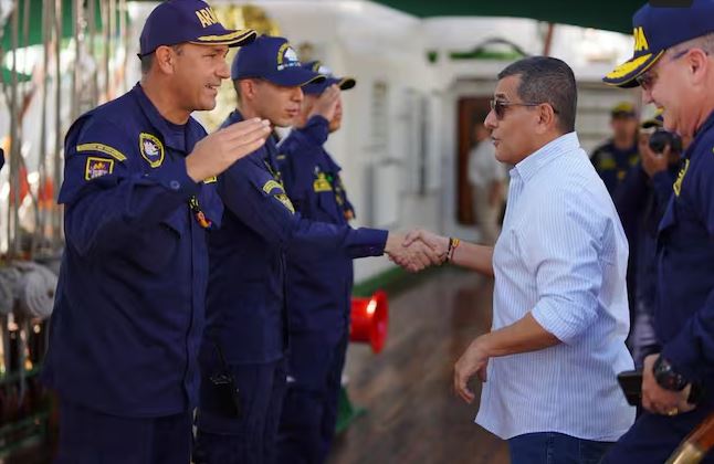 El alcalde Mayor de Cartagena, Dumek Turbay Paz, fue invitado por la Fuerza Naval del Caribe de la Armada Nacional a una mesa de trabajo y recorrido a bordo del Buque Escuela ARC Gloria, una reunión institucional liderada por el contraalmirante Carlos Oramas, comandante de la Fuerza Naval del Caribe, y altos mandos de la Armada Nacional, donde se abordaron los avances en materia de seguridad y el fortalecimiento del pie de fuerza marítimo, fluvial y terrestre en Cartagena y Bolívar.
