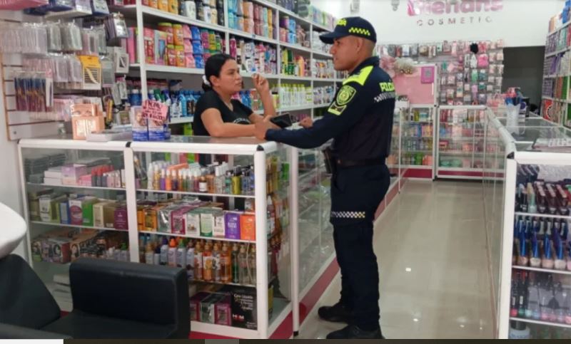 Durante estas acciones, los uniformados realizaron acercamientos directos con comerciantes y empleados, socializando recomendaciones claves para reducir factores de riesgo y prevenir hechos delictivos, entre ellas: