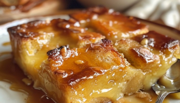 5. Vierte la mezcla en el molde engrasado y hornea durante 45-50 minutos, o hasta que el pudding esté dorado y firme al tacto.