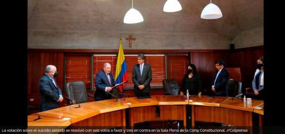 Por decisión de la Sala Plena de la Corte Constitucional, el suicidio médicamente asistido fue legalizado en Colombia. El alto tribunal tomó la decisión para amparar el derecho a una muerte digna, que ya había sido reconocido en sentencias anteriores. Lea: Corte Constitucional legaliza el suicidio asistido en Colombia