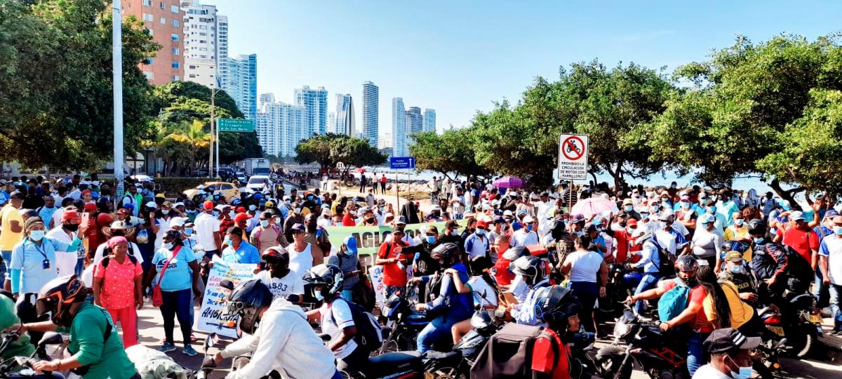 “Los 158 servidores que están en Bocagrande más que la confianza legitima necesitan estar en su territorio. Aquí hoy no nos interesa la plata porque la plata nos la ganamos nosotros. Ese cuentico de que hay 1.100.000, 1.200.000 para que uno se vaya para su casa, pero no sabemos (…)”, indicó un líder de la manifestación. Lea: “Ningún trabajador será relegado de las playas”