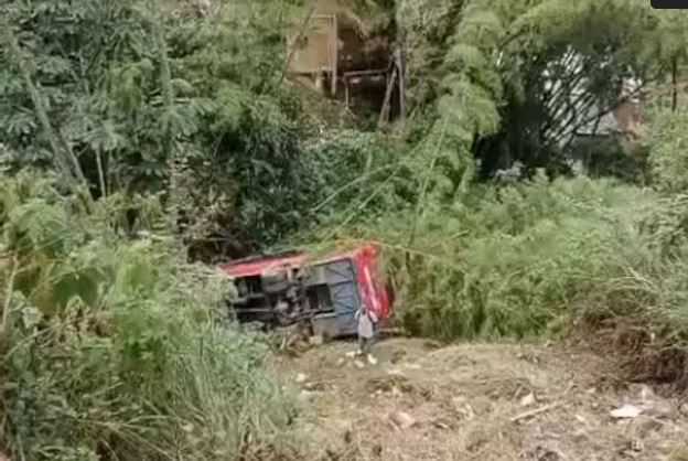 #Accidente I Un bus de servicio público con 25 pasajeros chocó con un furgón y una casa, luego cayó a un abismo. 12 lesionados; de esos, seis llevados a centros médicos. La persona que residía en la vivienda quedó con heridas de consideración. pic.twitter.com/UxfZak95Fb