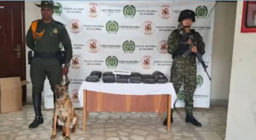 El operativo fue articulado también con soldados del Batallón de Policía Militar N.º 4 de la Cuarta Brigada, quienes en medio de los cientos de paquetes con encomiendas hallaron, al interior de una caja, un cargamento de aproximadamente 10 kilogramos de marihuana, contenidos en 14 paquetes envueltos en papel chicle color negro.