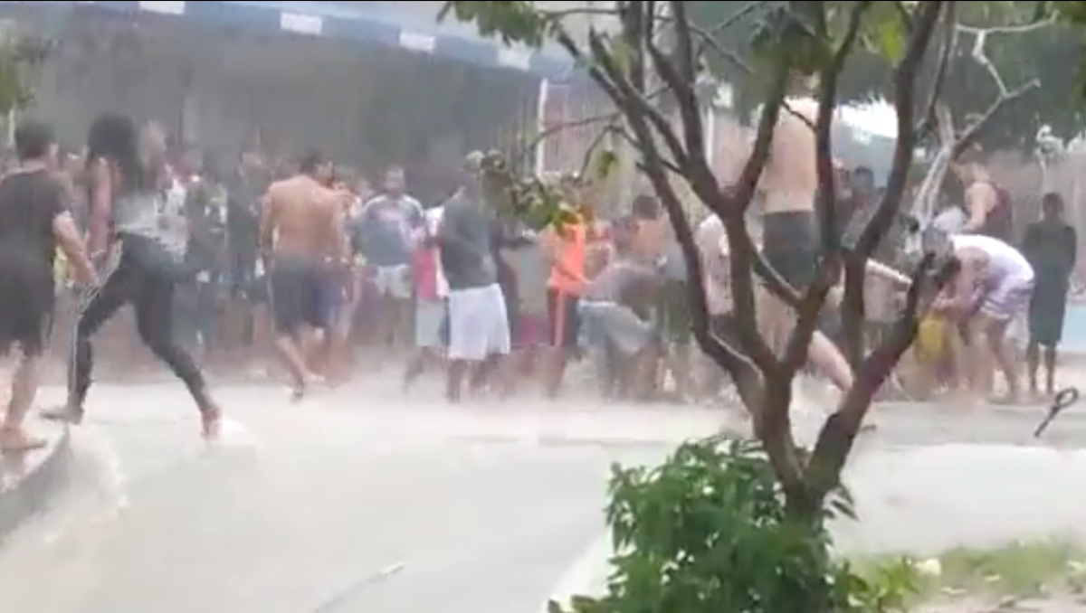 Todo parece indicar que los jóvenes del sector salieron a las calles a bañarse con la lluvia que caía en las horas del mediodía de este viernes sobre la ciudad. No se sabe quién empezó, pero de un momento a otro empezaron a tirarse piedras de un bando y el otro.
