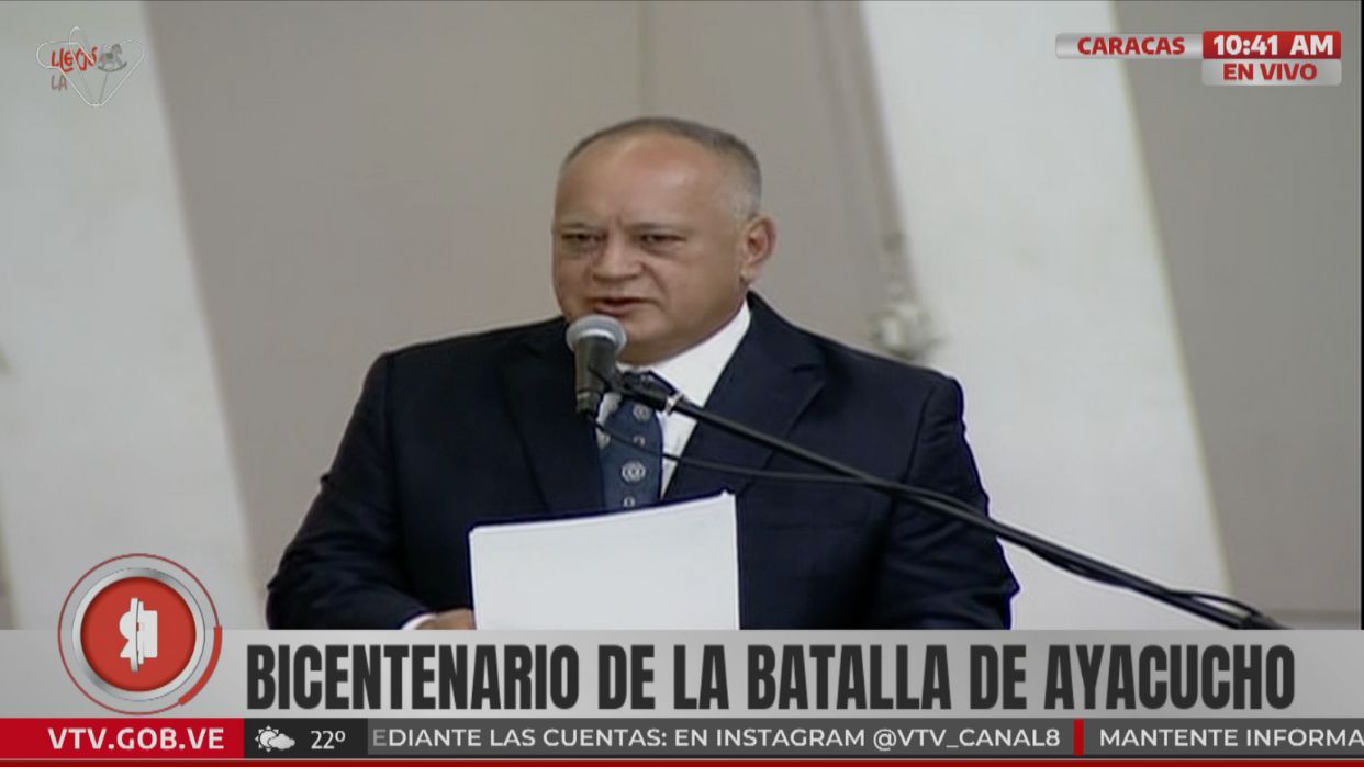 Durante un acto realizado en el Panteón Nacional, en la ciudad de capital, el ministro de interior, justicia y paz, Diosdado Cabello señaló que al conmemorar 200 años de la Batalla a de Ayacucho, los hombres y mujeres de la Patria continúan levantando las banderas de las luchas de los Pueblos libres del mundo.