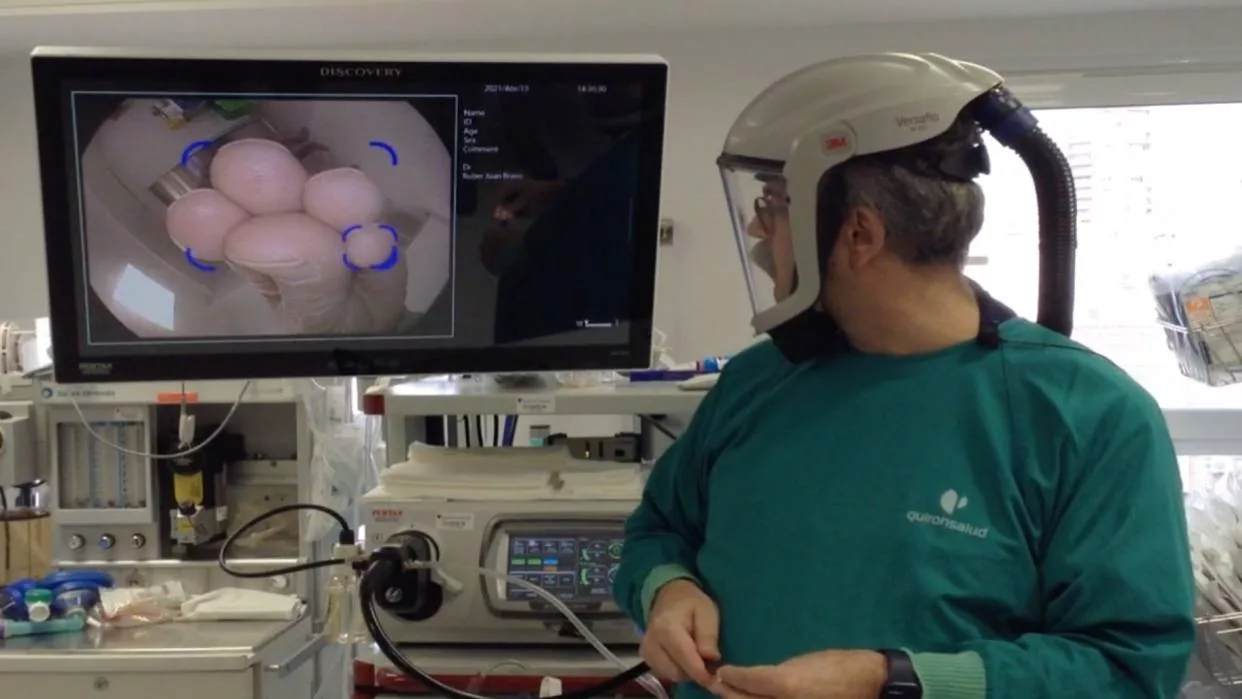 El objetivo es utilizar esta técnica para tratar lesiones que pueden pasar desapercibidas a simple vista en sus primeras etapas. Este software carga cinco millones de imágenes de pólipos al equipo, las compara y emite una alerta cuando detecta uno, según el también médico gastroenterólogo.
